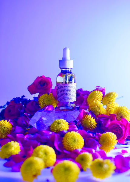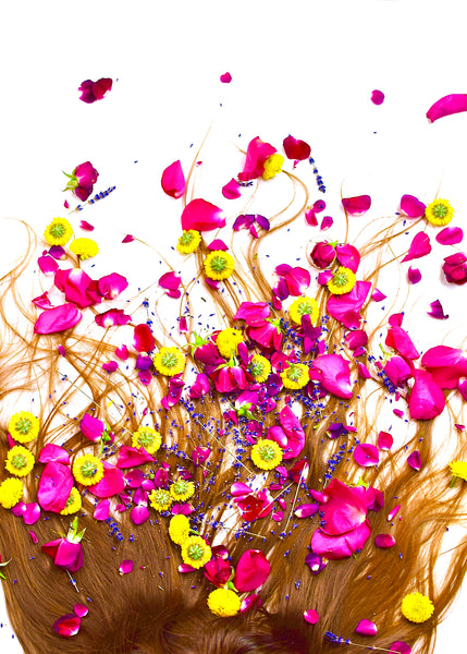 For all hair types, but mainly wild people, a bottle of wild flower dreams! Infuse tresses with warm awakening notes of lavender and a rose twist. Like a balm or salve, hair oils can add a layer of protection from the elements. With little bits of flowers glittered within, experience the floral gifts directly as the infusion magically continues everyday!