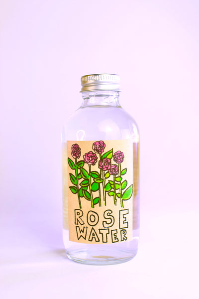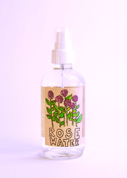 Includes: a 4oz (118ml) glass bottle of Rose Water with your choice of a metal cap or a spray mist top. Shipped + packaged with love and nature friendliness.