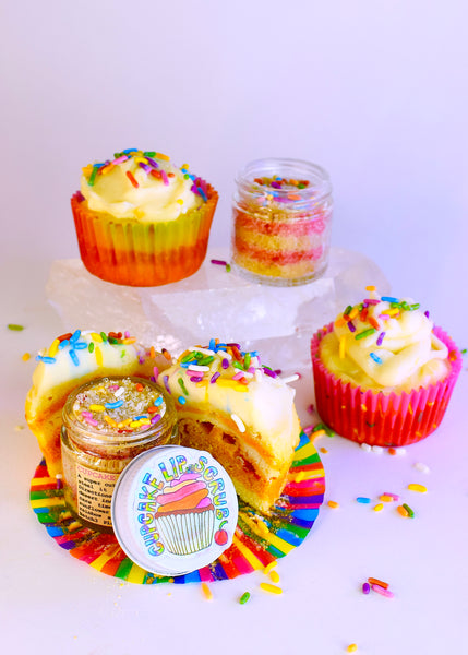 Includes: a 1oz (28ml) glass jar with a metal cap of Cupcake Lip Scrub. Shipped + packaged with love and nature friendliness.