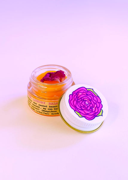Includes: your choice of a 1/4oz (7ml) or a limited edition 1oz (28ml) glass jar with a metal top of Beach Rose Luxury Balm. Shipped + packaged with love and nature friendliness.