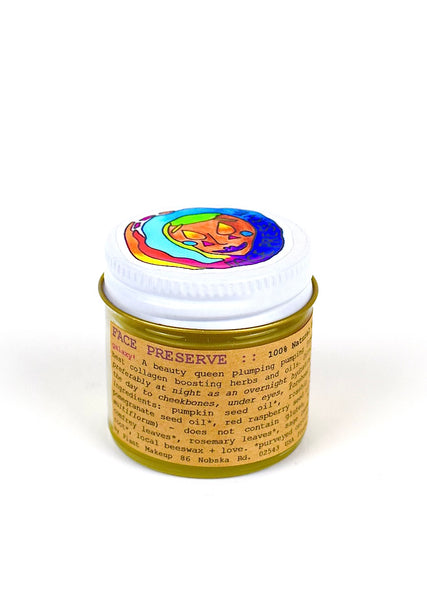 Includes: a 1oz (28ml) glass jar with a metal lid of Face Preserve. Shipped + packaged with love and nature friendliness.