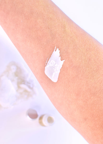 Ingredients: cold pressed aloe vera gel (which is whole leaf filtered with a tiny bit of citric acid (from fermented sugar) carrageenan (from dried seaweed) and potassium sorbate (from berries from the mountain ash plant variety)), kaolin clay (Hydrated aluminum silicate), argan oil* (Argania spinosa), rosemary extract* (Rosmarinus officinalis) produced via supercritical CO2 extraction infused in olive oil (Olea europaea) + love. *purveyed certified organic ingredients