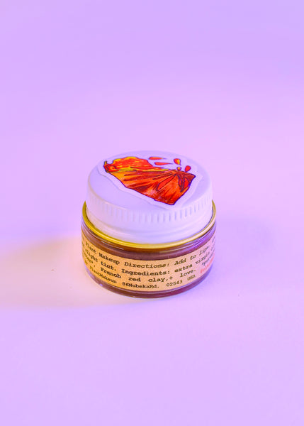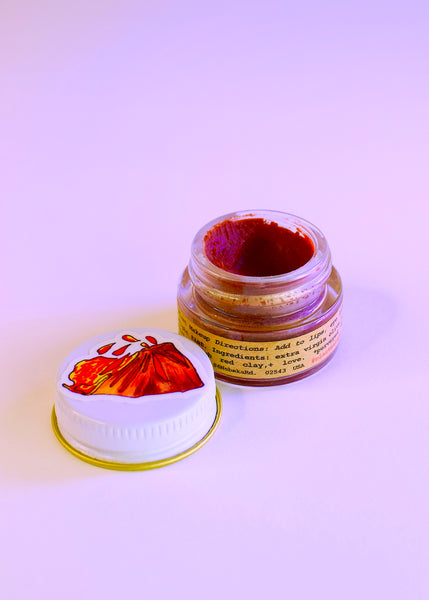 A unique deep LAVA red multi-use dewy makeup balm for eye lids, lips, cheeks and anywhere else you'd like!